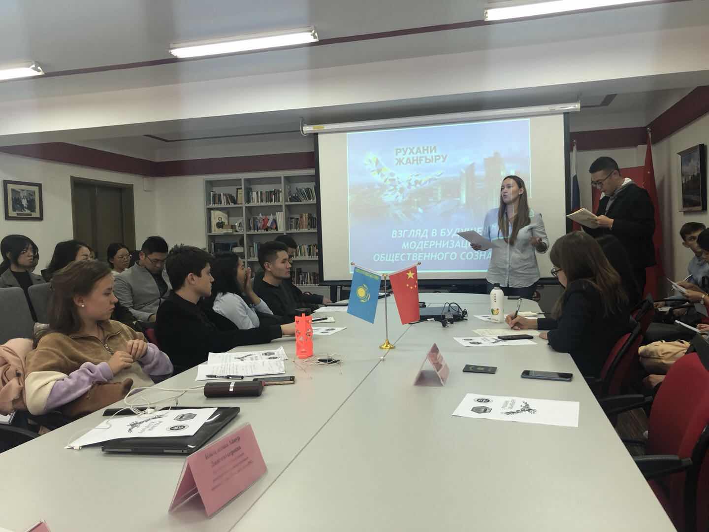 В октябре 2018 г. в г. Далянь, КНР состоялся первый круглый стол по Программной статье Президента Республики Казахстан Н.А. Назарбаева: «Взгляд в будущее: модернизация общественного сознания» совместно с Ассоциацией университетов стран Шелкового пути на базе Казахстанско-Китайского центра исследований при Даляньском университете иностранных языков , КНР.