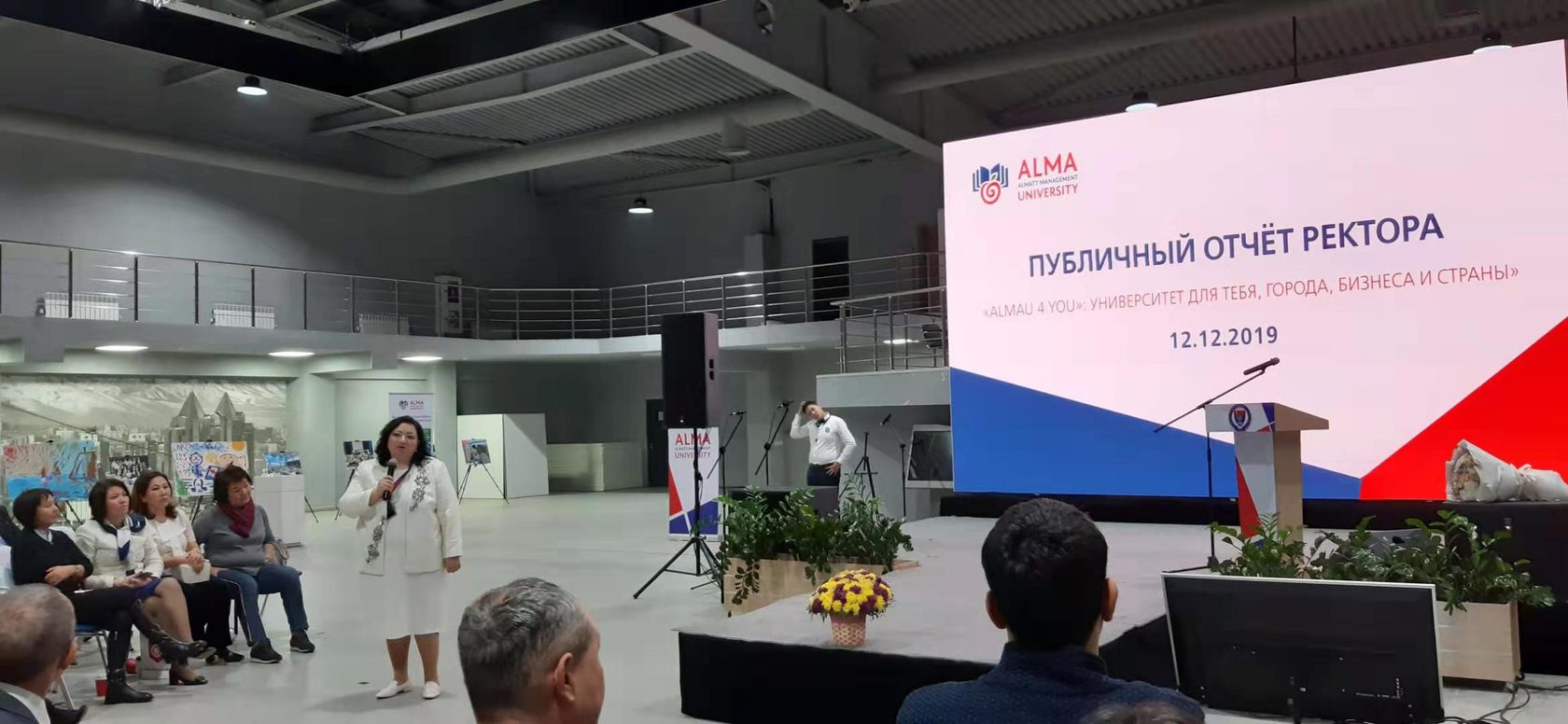 12 декабря 2019 года координатор проектов АссоциацииАшимоваАйнашприняла участие в отчетной встрече ректораAlmatyManagementUniversity. Первый публичный отчетректорапрошел на тему: «AlmaU 4 You»: Университет для тебя, города, бизнеса и страны».Отчет заслушали представителибизнеса, государственных структур, иностранные гости, представители медиа, университеты – партнеры, сотрудники и студенты университета. Встреча прошла в теплой и креативной атмосфере.