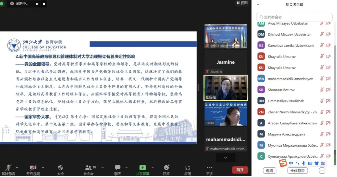 Cеминар ректоров из развивающихся стран прошел с 25 октября по 11 ноября 2022 года в онлайн форме в рамках сотрудничества Ассоциации и Университета Шанхайской Организации Сотрудничества. Организатором мероприятия выступили Министерство Образования КНР. В этом году университеты - партнеры Казахстана и Узбекистана приняли участие в работе семинара. Участники познакомились с тенденциями развития высшего образования в Китае и результатами теоретических и практических исследований в сфере высшего образования в китайских вузах.