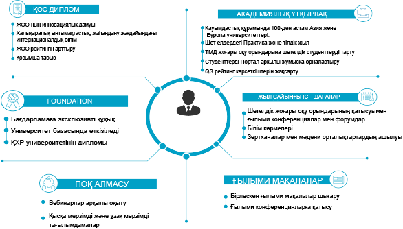 2018 жылдың көктемінде ҚХР-ның Қазақстандағы Бас консулының, ҚР БҒМ өкілдерінің, Қытайдың, Қазақстанның, Ресейдің "бір жол белдігі" концепциясының сарапшыларының және осы саланың жетекші профессорларының қатысуымен "Жібек жолы елдеріндегі білім беру " тақырыбында дөңгелек үстел өтті. Жібек жолы елдеріндегі білім берудің өзекті мәселелері талқыланды, білім берудегі интеграцияның жаңа жолдары ұсынылды